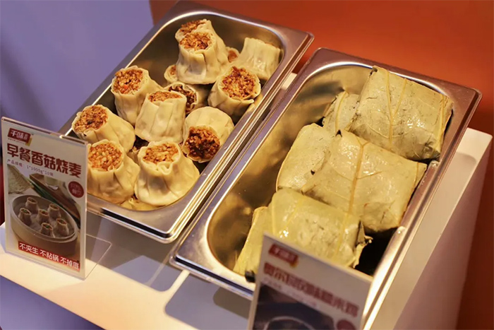 燒麥也是近兩年米面行業俏銷的一大單品。千味央廚上新早餐燒麥系列,有大燒麥、小燒麥兩種規格,香菇、蔥香肉、剁椒肉、牛油、青豆雜糧五種口味可供選擇,挨蒸不粘出餐快,炒料工藝味更香,延續了千味央廚產品一貫的美味作風。